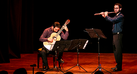 30 de agosto | sexta, 20h Duo Madeira Música do século XX para flauta e violão Da música espanhola ao tango, passando pelo folclore húngaro e pela música brasileira, os premiados irmãos Madeira apresentam interpretações originais de obras-primas de Astor Piazzolla a Béla Bartók. O repertório mescla inovação e tradição, com interpretações refinadas e marcantes. A formação explora a agilidade e leveza da flauta com a capacidade harmônica e sutilezas de timbre do violão e oferece ao público um concerto variado e instigante, explorando os diferentes ritmos, melodias e harmonias. Série: Viagem através da Música |